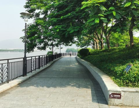 免费开放的大公园,在晨雾初散时能见到星岩烟云的风光,挺好的。这里也是当地居民晨练和休闲散步的地方