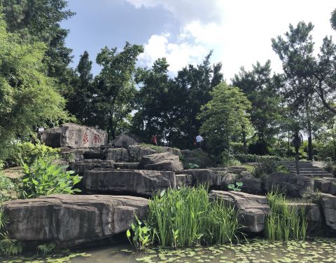 ...绿化率颇高 有大广场和运动设施供市民休闲活动 公园还有很大的荷花池 夏季时荷花盛开景色非常秀丽