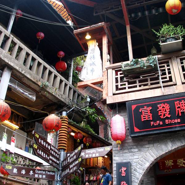 五番坑,顾名思义,就是第五号坑。矿从这里采出来,运到山下去。九份本身便以金矿而闻名,淘金客蜂拥而至,铸就了昔日的繁华,日据时代,更到鼎盛。直至矿藏挖尽,人去楼空。 五番坑临近轻便路,前划出一大片空地,林荫下供游客休憩。也可以走到矿口,探探旧时的风景,只是那一阵阵凉风,阴气袭人。