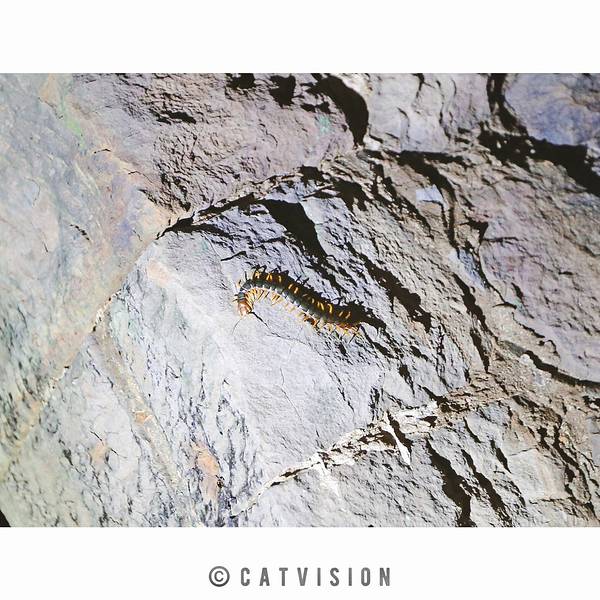 五番坑就在升平戏院后,轻便路上。坑前有一块广场,是一块游憩的小型小区公园平台,这里也算是个观海的好去处~偶遇大蜈蚣一只~“看这里看这里!”老板打着手电筒,指给我们看,“这里的岩层上能看到不少化石。”