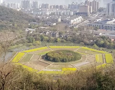 爬到旁边玉皇山顶的紫来洞的平台观赏最佳,单程上山20分钟左右八卦田:最外面一圈植物是黄色油菜花,三月中下旬正是开花季~登顶俯瞰效果更佳,能清楚看到八卦田造型。爬到旁边玉皇山顶的紫来洞的平台观赏最佳,单程上山20分钟左右。