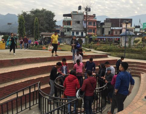 穿过大门,景区真正的大门在后面,唯一一个售票窗口前挤满了人,而这些人大部分都是本地人离开和平塔,沿着弯弯曲曲的山道下到博卡拉的市郊,然后将近20分钟之后就到大卫瀑布了。