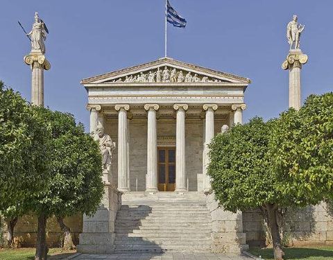 ...学术机构了,也是非常多的人朝圣的地方,整个建筑很漂亮,他的大门口矗立着柏拉图和亚里士多德的雕像雅典科学院是整个希腊地位最高最权威的学术机构了,也是非常多的人朝圣的地方,整个建筑很漂亮,他的大门口矗立着柏拉图和亚里士多德的雕像。