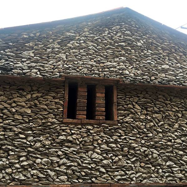 原来这强烈的腥味来自路边堆积的海蛎壳,数量还颇为壮观,远远看过去花白色的像是石头屋,层层的片状...居民区离海边其实还有些距离,照理说味道不能这么重。循着味儿才发现,原来这强烈的腥味来自路边堆积的海蛎壳,数量还颇为壮观,远远看过去花白色的像是石头屋,层层的片状石头,走近一看方才发现原来都是巴掌大...居民区离海边其实还有些距离,照理说味道不能这么重。循着味儿才发现,原来这强烈的腥味来自路边堆积的海蛎壳,数量还颇为壮观,远远看过去花白色的像是石头屋,层层的片状石头,走近一看方才发现原来都是巴掌大的海蛎壳混上水泥砌起来的,密密麻麻,严丝合缝,真可谓是因地制宜,就地取材,而且还没有腥味,想必应是做过了处理。据说这蚵壳厝还有冬暖夏凉,防风防潮的功能,真是很适合海边的条件。另外由于它墙体坚固,甚至可以抵挡炮火的攻击,所以当地有“千年砖,万年蚵”的俗语。 展开
