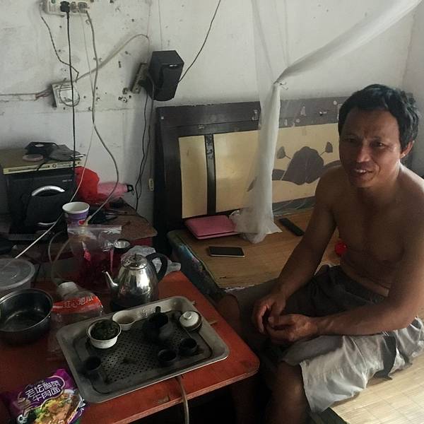 大家看到照片就知道了房子的主人,正坐在床上喝茶。带我来到这的男人是他的朋友。