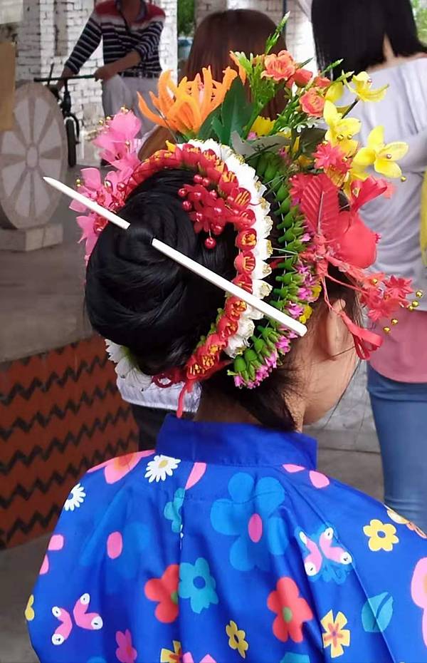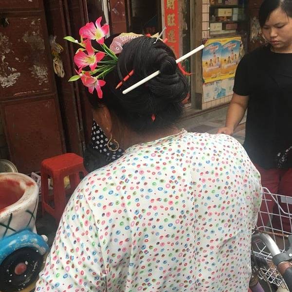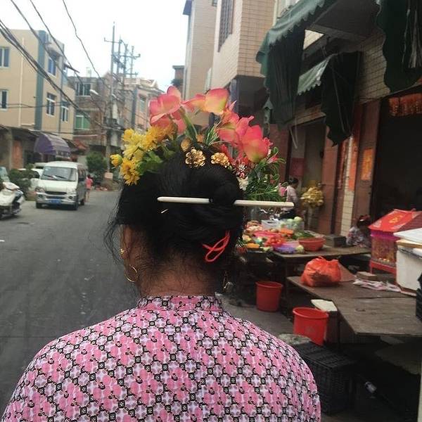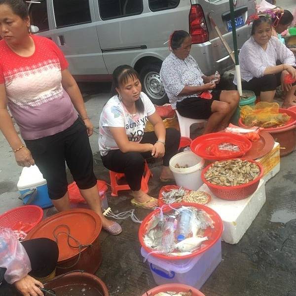 我拍的这两位应该都是已婚妇女,因为只有已婚妇女,才要用簪子横着别过头发,上面再戴一串鲜花串道边的集市~~~真的就是靠海吃海哈喏~~在游记上经常看到的标志哈,就在村子中心不显眼的路边。