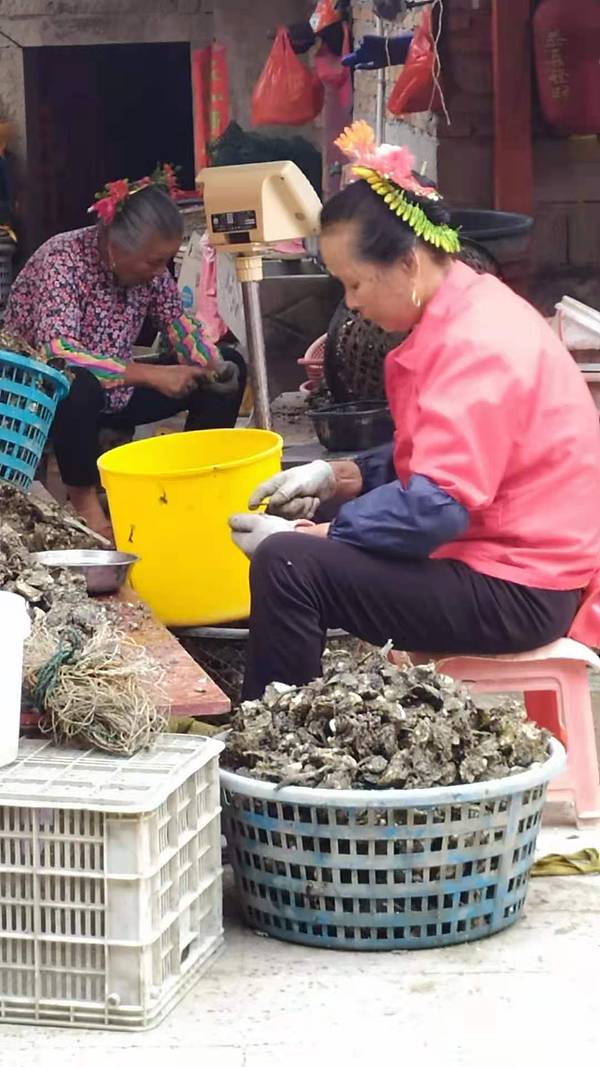 到处可见艳丽的头饰、奇特的发型的蟳埔女在剥牡蛎,仍然坚守着古老的习俗,她们头上的花串,又称“簪花围”【蟳埔渔村】最具特色的是用蚝壳建造的房子——蚝壳厝,泉州的渔村很多,但是蟳埔离市区最近,决定来一探究竟。 走进渔村,到处可见艳丽的头饰、奇特的发型的蟳埔女在剥牡蛎,仍然坚守着古老的习俗,她们头上的花...【蟳埔渔村】最具特色的是用蚝壳建造的房子——蚝壳厝,泉州的渔村很多,但是蟳埔离市区最近,决定来一探究竟。 走进渔村,到处可见艳丽的头饰、奇特的发型的蟳埔女在剥牡蛎,仍然坚守着古老的习俗,她们头上的花串,又称“簪花围”,有着“头顶花园”的美誉。 今天巧遇当地人在庆祝妈祖生日。(庆祝活动有五天)蟳埔阿姨们热情地邀请我们一起吃当地特色食物,我在旁边看他们制作的过程:把大蒜、花生米和蛤蜊用淀粉捏在一起,汤底加入蛤蜊、细面条、青菜和蟹,还放入一种野生的芋头,连一旁的福建人也说很难得吃到,让我们上海来的多吃一点。最后,我们塞给老族长 ,老族长坚持不肯收,她赤着脚带着我们来到妈祖庙,供奉妈祖。 这里的阿姨们热情纯朴,很愿意和游客合影,大大方方的,我们都很纳闷这里的男人去哪里了? 后来又来了一队小学生和老师,原来是舟山沈家门小学的学生,换上当地民族服饰,听老师们授课,乖巧懂事。 展开