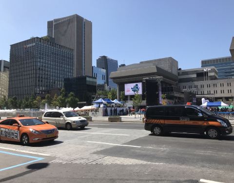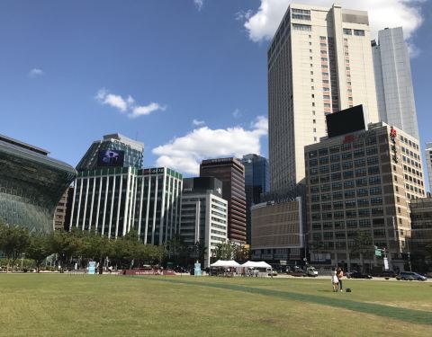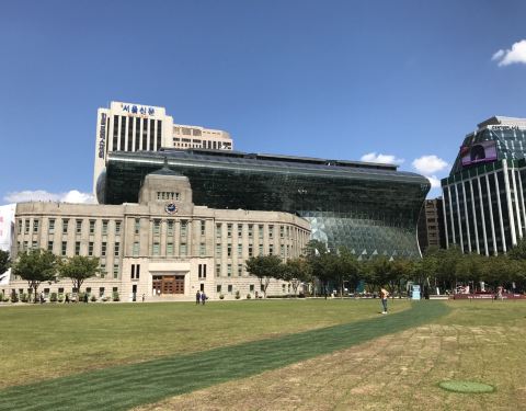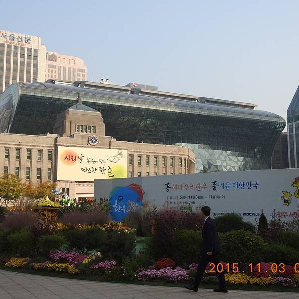 市政厅前的有个墙就大很多。它是首尔的一个里程碑,是一个环保的建筑,有着世界上最大的室内绿色墙它只是一个办公大楼。它是首尔的一个里程碑,是一个环保的建筑,有着世界上最大的室内绿色墙。市政厅前的有个墙就大很多。有时他们用它做不同的户外活动。从德寿宫正好有条街道穿过市政厅。