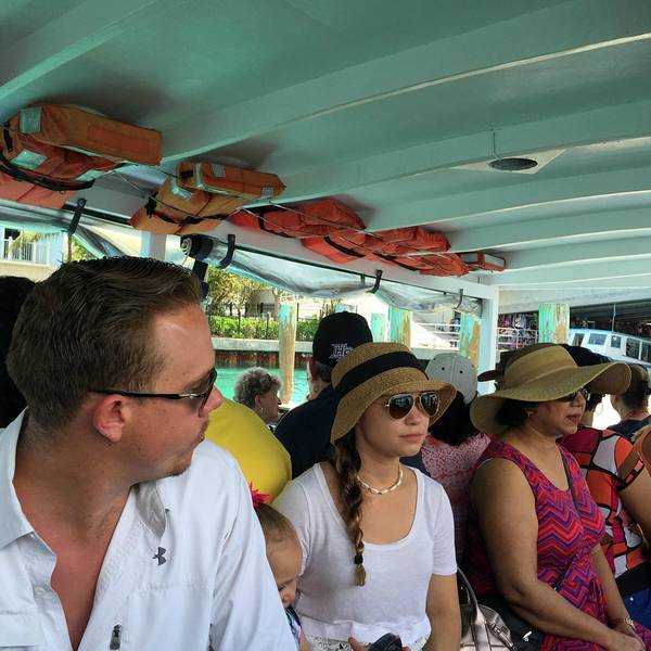 巴哈马的天堂岛(ParadiseIsland)与首都拿骚隔海相望,有两座桥相连。天堂岛长4英里,宽半英里。天堂岛因亚特兰蒂斯酒店(Atlantis Paradise Island)而闻名于世。当地居民称这座酒店为天堂岛酒店。在迪拜有一座造型一样的亚特兰蒂斯Atlantis酒店,建的晚,更为奢华。这座介于粉红和砖红色外墙的宫殿般的奢华酒店,头顶蓝天白云,浩瀚海水环抱,神庙似从海面升起。在拿骚很多地方都能从不同角度看到她的倩影。柏拉图曾经描述,这里有一座古城帝国,富裕文明,如神话中的天堂一般,最后全城覆灭,沉入海底,瞬间消失了。关于古城帝国的神秘传说,猜想,变成了故事,绘画,也成为当地居民的美好憧憬。这座豪华酒店设计和管理,注入了人们的愿景和创意,环境,装饰,一切与海洋有关,旨在住客感受犹如回到古城帝国,辉煌的历史,美丽的传说变为现实。酒店有2300多间客房,最好的套间一夜上万美金。假日一房难求,富豪打飞的专程来享用。酒店基本占据了天堂岛,外围有庞大的购物村,休闲草坪绿化。天堂岛一部分场地对公众免费开放,如赌场,奢侈品商店,部分长廊,餐厅,各部分入口有专人把门。酒店设施供住客享用,或参观者购票入内,包括水族馆,水上乐园,冒险游戏,酒店海滩,最诱人的是近距离和海豚拍照,拥抱海豚,和海豚握手。游客参观票价近百美元起,根据参与活动的范围和含餐饮,高的几百美元。从拿骚去天堂岛可以坐渡轮,单程4美元,有人讲解,船上观景和拍照非常好,早上9点开始。步行走过跨海大桥,走向天堂岛。从市中心到桥下大概步行半小时,桥上步行二十分钟。街上有小巴,每人五,六美元单程送到天堂岛。我们来回采用步行和渡轮方式。巴哈马国有700多个大小不一的岛屿,其中20个有人居住,全国总共人口三十多万,绝大多数住在拿骚。拿骚的游客主要是每天停靠的三,四艘邮轮的万名游客。我们从纽约直飞巴哈马(Bahamas)的首都拿骚(Nassau)三个小时,机票1000元。从拿骚飞迈阿密,不到一个小时。巴哈马是旅游圣地,现在和中国互免签证。动物园,火烈鸟是巴哈马国鸟