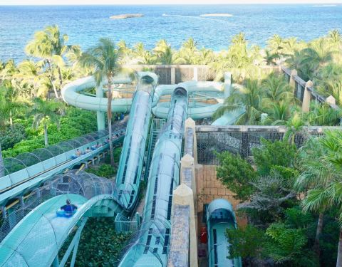 有世界最大的水族馆 迷失在亚特兰蒂斯,作为巴哈马的标志,几乎占据整个天堂岛,有冲入鲨鱼翅的滑梯...