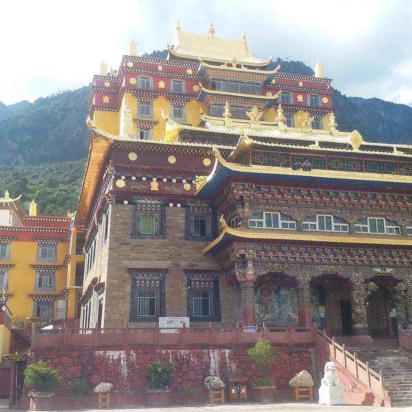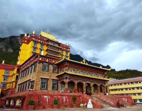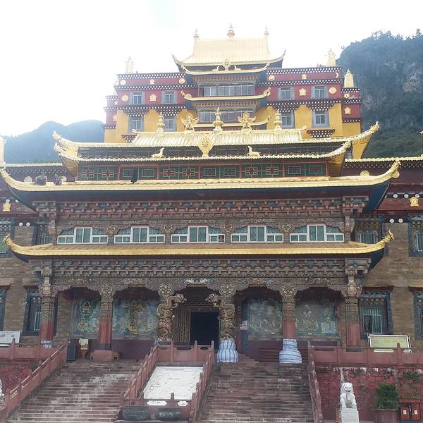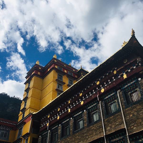 木里大寺曾是康巴藏区规模最大的黄教喇嘛寺庙之一,在藏区具有特殊的地位。主体建筑气势恢宏而彰显华丽,在空间组合上,院落重叠,回廊曲栏,错落有致,门厅、壁柱、绘有各种彩绘壁画、图案。