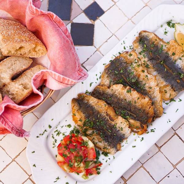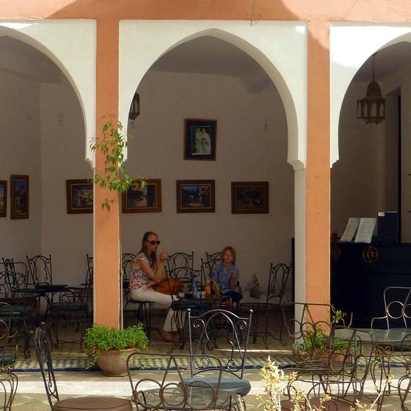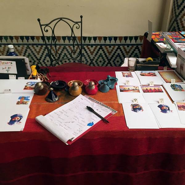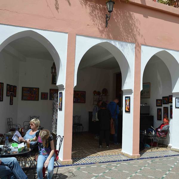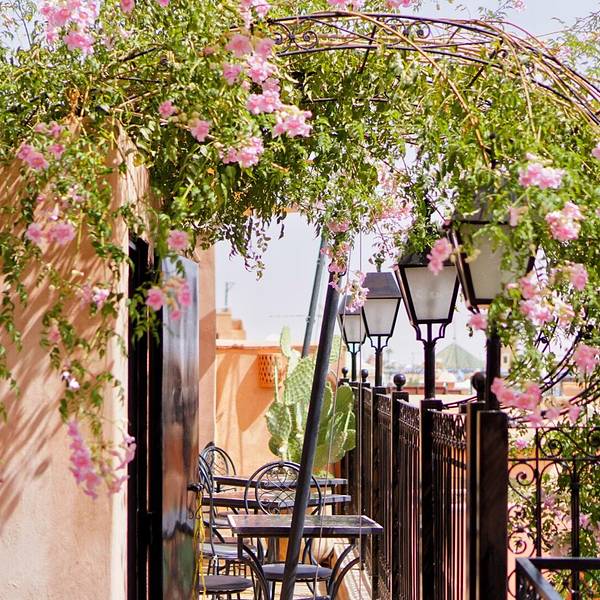 博物馆院子里有露天咖啡厅,但是到我们离开时已近中午还没有开门。院子里一个小商店,陈列的明信片上可以看到最完美的 马拉喀什 的美景。▲Marrakech的老城通过我的综合比较,已经算是非常有秩序的,城市内部值得慢慢逛,只要不去特别偏僻的小巷,治安基本没有什么问题。▲这家餐厅是在网上看到有人推荐的,从花园出来后就打车直奔这里,基本上是欧美食客偏多,食物也很有 西班牙 风情,推荐他们家的组合Tapas,Mojito,沙丁鱼,环境特别赞,可以欣赏老城风光