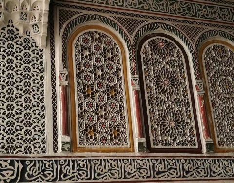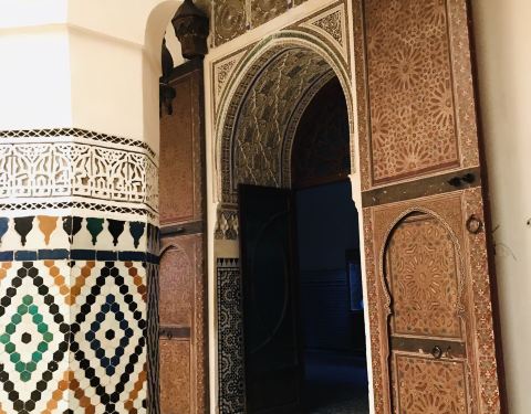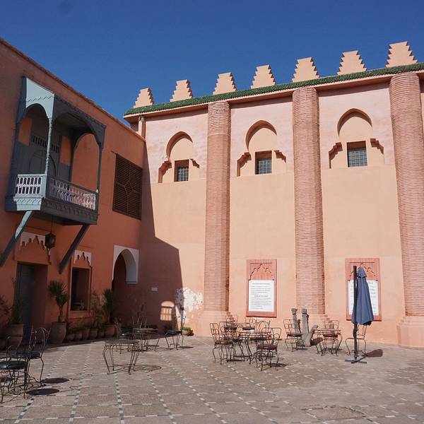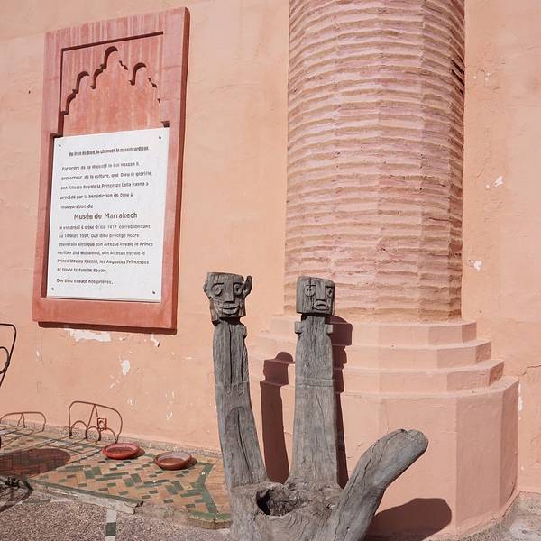从马 约尔 花园出来后就在 马拉喀什 的老城里面瞎逛,偶遇了一个精美的建筑,进去之后才知道是 马拉喀什 博物馆,博物馆院子外墙砖红色,外面有明显标示。