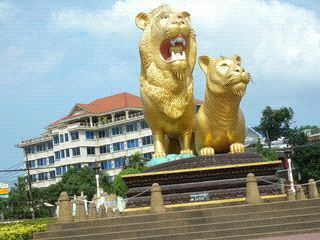 就是一对画的金狮子在交通中心。就成了城市的地标。地方不大,旁边有好几条路口通往不同的地方。那里交通不算很好,嘟嘟车是游客的交通工具。