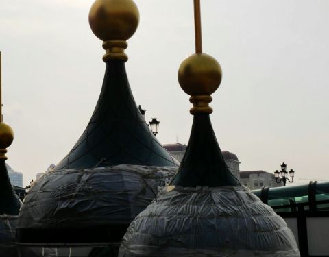 外观非常漂亮,但内部不对外开放。哈尔滨火车站北广场的一座洋葱头顶的小教堂