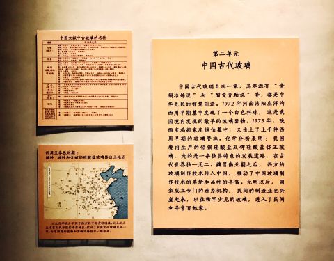 展厅分:古代玻璃及发展、中国玻璃工业摇篮、中国当代玻璃工业和璀璨神哥的玻璃世界四个区域