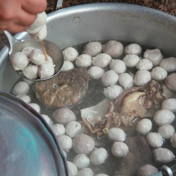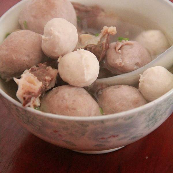 百侯肉丸又叫客家肉圆,历史由来已久,既是小吃又是一道家常菜。在百侯宴席之上也是一道必不可少的佳肴。客家主人取“丸”“圆”谐音,寓意团圆、圆满。肉丸以猪肉或牛肉居多,据说也有鱼肉、鸡肉、虾肉或牛筋的,不过我不曾吃过,我只是吃过猪肉与牛肉的。 东升肉丸也是家老店了,就在百侯侯南老街上,他家的肉丸味道纯正、柔韧爽脆,让人回味无穷。 新鲜的猪肉或牛肉,用特制的捶刀捣成肉酱,攒成小丸子,入沸水锅煮。肉丸入口既有嚼头又不打渣。最经典的是将肉丸与牛肺一起煲,几个肉丸再来几片牛肺,蘸上店家秘制的酸辣酱,当真是过瘾不得了。肉丸的汤也是非常的美味,而且若是不够是可以再免费添汤的。店家还提供真空包装服务,带回家冷冻储藏。可炸、可煲、可炒。若是有机会去百侯的,一定不要错过这等美味!