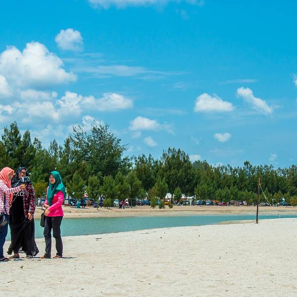 这里是本地人最爱的休闲沙滩。傍晚时分,不少游人会带着孩子在这里放风筝,而对于摄影爱好者来说,这里更是拍摄马六甲海峡日落的好地方。