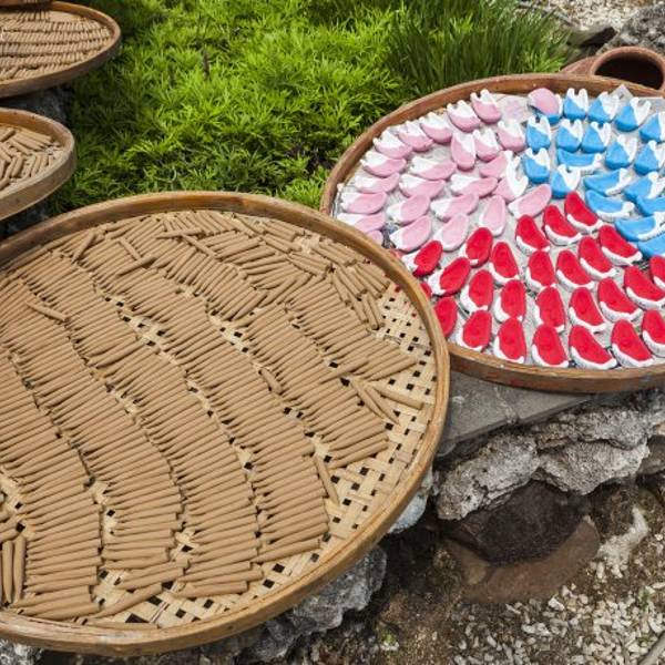 澎湖县二崁村是国内第一个传统聚落保存区,二崁聚落在历史、民俗文化和建筑上都保有了许多传统特色,是台湾历史建筑百大景之一。近年来,这里在当地文化工作者的努力下,还打造了许多特色小店,成为许多游客散步的景点。每间古厝里的装潢与卖的东西都不太一样,有汉药、明信片、小古玩等,应有尽有,等着游客前去淘宝。古宅中有家“二崁传香”值得一逛,是一家手工制香特色店。二崁早期有很多人从事中药生意,以二崁唾手可得的野生植物天人菊、野艾草及山芙蓉来制香,自然草本熏香不但能安定情绪,更是早期二崁人环保又免费的自制蚊香。香座则是村内老人家们挥洒艺术天分的成果,用高岭土捏塑澎湖传统的大目船、舢舨船造型,作为二崁传香的底座。此外,二崁村的杏仁茶超浓又好喝,不仅香气十足,又没有令人害怕的杏仁苦味,冷饮、热饮皆有,来到这里请务必喝上一杯。