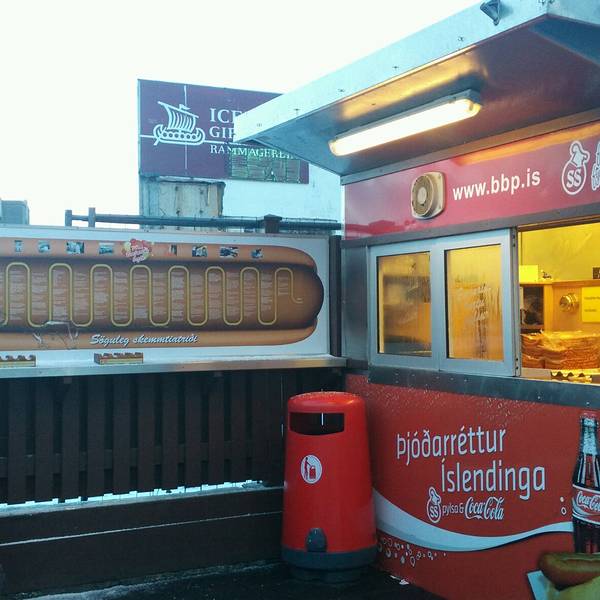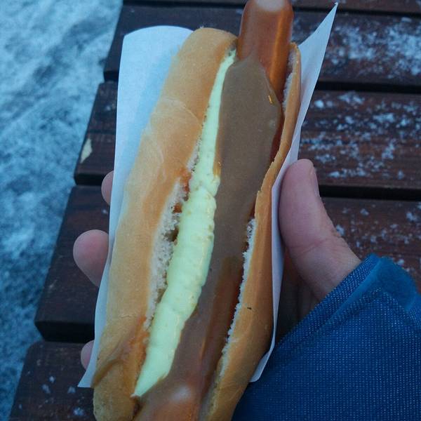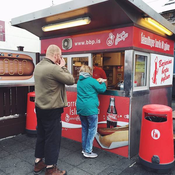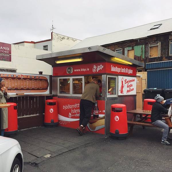 冰岛人常常会骄傲的告诉外国人,我们冰岛的羊肉是最好吃的!不过冰岛的羊非圈养,常年自由放牧,虽不敢说真的是世界第一,但不能否定味道不错。加上羊肉暖身,更加成为冰岛餐桌上的主打,连冰岛的热狗都是一般猪肉、一般羊肉。说起冰岛热狗,最出名的就是雷克雅未克的连锁热狗店Bæjarins Beztu Pylsur,已有70 多年的历史。最出名、最受欢迎的一家在市中心旧港大型音乐会议中心Harpa 的对面,美国前总统克林顿也曾是他的粉丝。这里每天都排着长队,不过店主的动作也快,游客可以趁机和本地人聊上几句。对于不想破费又想品尝本地特色的朋友,这家冰岛热狗是不二选择,至于热狗的调料酱,没有特别忌口的朋友就直接说with everything( 什么都要) 吧!