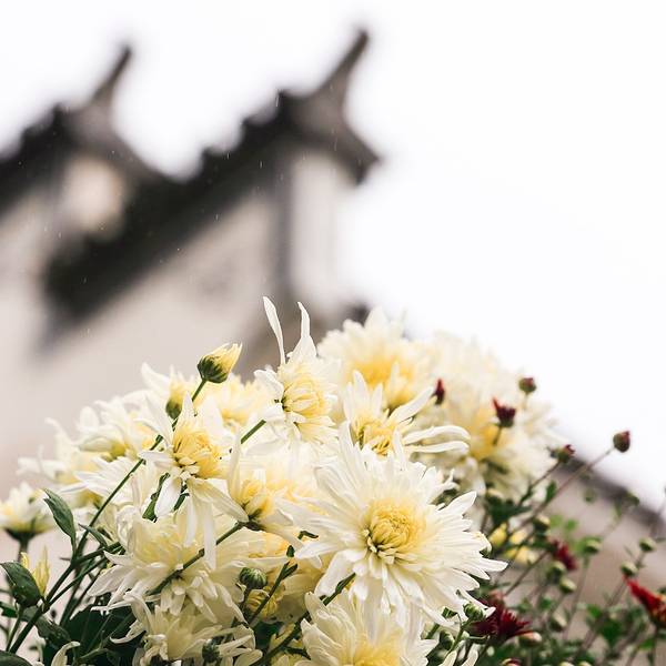 还有一个赏菊的好去处是三棵树,这里因为三棵大树得名,这里的菊花金灿灿的。据说菊花就该在这个时候采摘,金灿灿的菊花在茶水里张开,既明艳又温婉。再晚一点雨水淋得更多了就失了香气,就不能泡茶喝了。