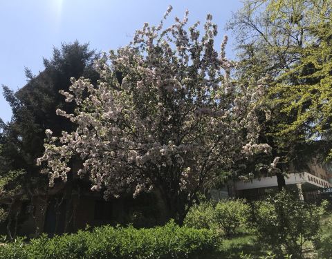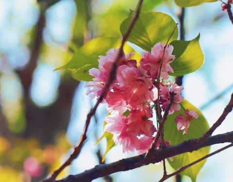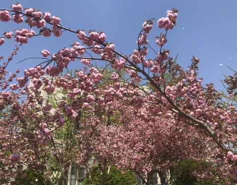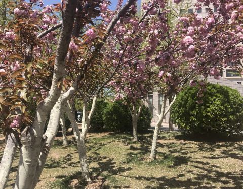 如果没有看够染井吉野盛开的美景,在之远楼前还有八重樱,它们在染井吉野凋谢的时刻便开始盛开,仿似继承了她们点缀校园的使命,让东财在每个春天里都能美丽的像一位令人憧憬的女神。