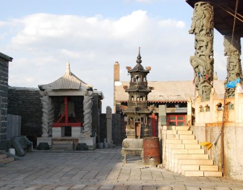 东台顶在五台山北入口路上。原来可以自己开车。今年必须买票上顶了。大雾,下雨,什么也没看见。东台的寺庙是砖石的。已经不是木结构了。想必台顶恶劣的天气木结构不能持久