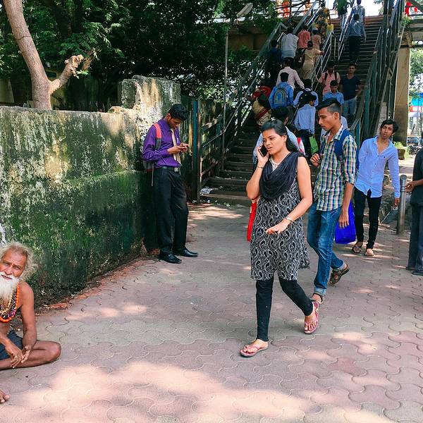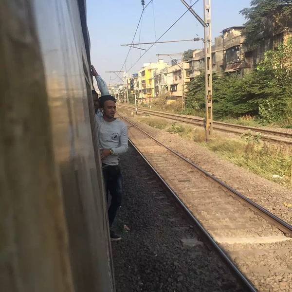 孟买城市火车西线上,低头一张有趣的抓拍,这凉鞋基本是所有印度男人的标配吧搭乘孟买城市火车WR西线到Mahim站,过了天桥就是达拉维平民窟孟买城市火车西线上,低头一张有趣的抓拍,这凉鞋基本是所有印度男人的标配吧
