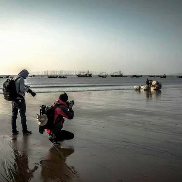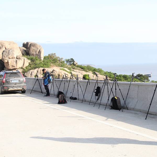 其实,这个人是个“临时演员”...我们当天刚好在这里碰上了一组摄影团。我们第一次知道了原来在摄影团里有“导演”这个职位,他做的事情就是联系当地的演员,在这些类似的摄影点进行摆拍。。一个老奶奶给我看了他们之前摆拍的照片,比如渔民划船,山里的姑娘回眸等等...一排脚架已经摆好。