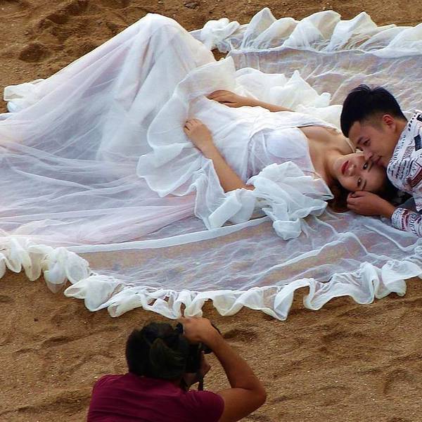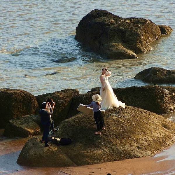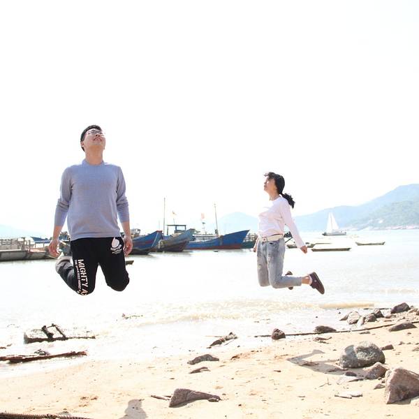 我估计上面拍照的人都快恨死我们了吧,不仅把人家临时演员的良好画面占据了,而且还在这么美的海滩上写字,哈哈。