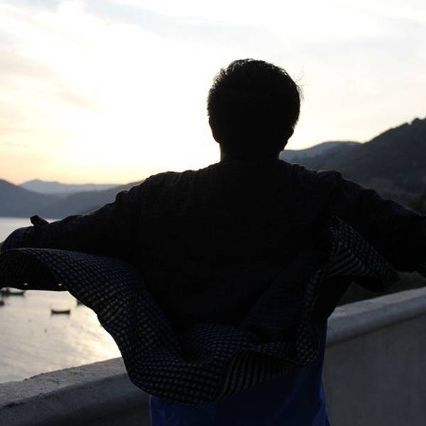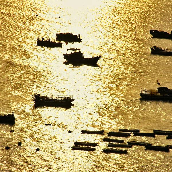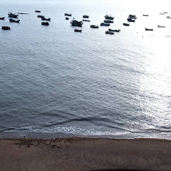 就像浪冲打海滩那样快。临时演员临走前,又抓拍了几张,这张色调偏红的照片其实比那张没有调白平衡的照片更有感觉。镜头拉近,金黄一片的大海上,船的背光黑影显得画面很满又很空。孤零零的船儿,说到底,都是演员吧。