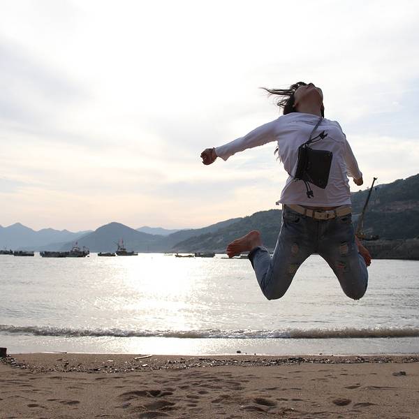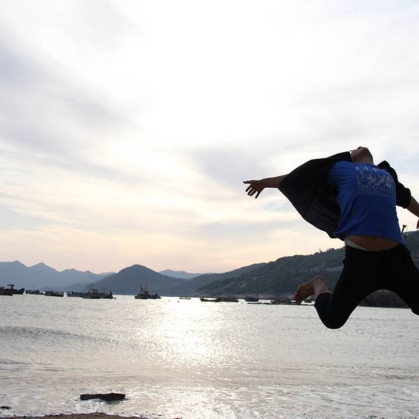 此时,我们看着天色还早,并且看样子潮水已经逐渐涨上来了,滩涂上的临时演员虽然还没撤掉...我们还是趁着还有海滩的时间,我们赶紧下桥去踩水!有木有觉得晨晨闪着金光!!实际上我只是把她硬扣成高亮度了...原照片背光背的实在是太黑了...于是咱不拍人的脸照了,改拍常规跳起吧!实际上,感觉经过一年多的努力,我的跳起功力已经越来越强了。