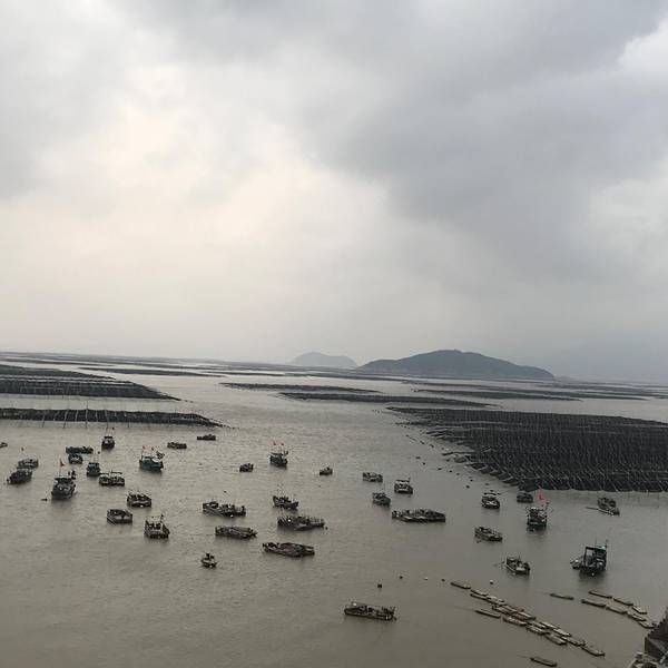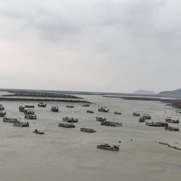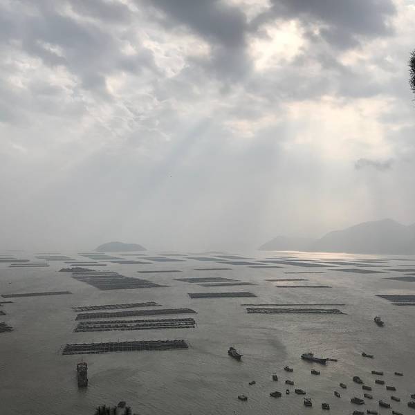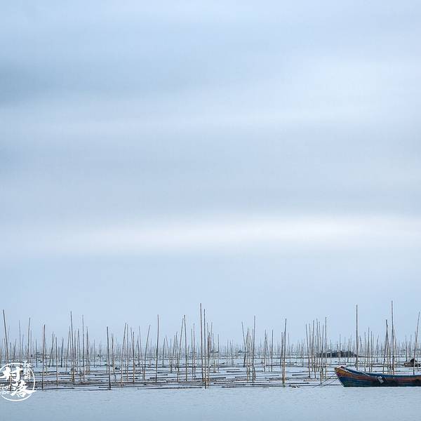 风实在太大,把所有的衣服穿身上还是冷!不想留下遗憾,想最后看看霞浦的日落,我们找了一个避风的地方等待,一个多小时过去了,没看到日落,只看到乌云后的一缕光、看到退潮后海面上渐渐升起的养殖紫菜的架子。这些架子一片片隐藏在海水中,只有退潮才露出来。据小王讲,来霞浦3-5月看海带、7-10月等台风、11-2月就是看紫菜了。这里是全国最大的紫菜生产地,头水的紫菜口味最佳,可凉拌、煮汤......,他给我们安利这里的紫菜,不过在霞浦的几日到处可以看到卖紫菜的。我们第二天上火车前还是去了小王推荐的地方买了紫菜、海带,又被安利了当地的白茶。