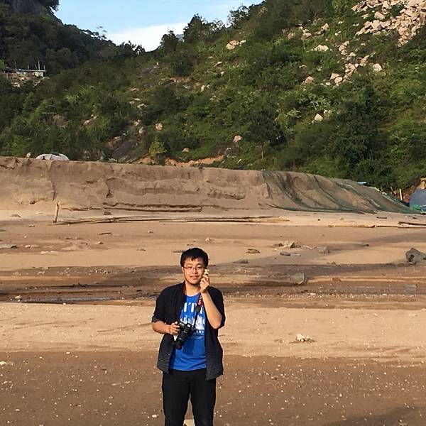 我在比划爱心呢.......................猜猜这是晨晨的背影还是深圳姐姐的背影?这个...刚到东壁,有一个下坡可以到达不大的一片海滩,我们看刚好有一艘船停在这,于是就从这个路口下来了。