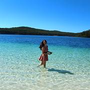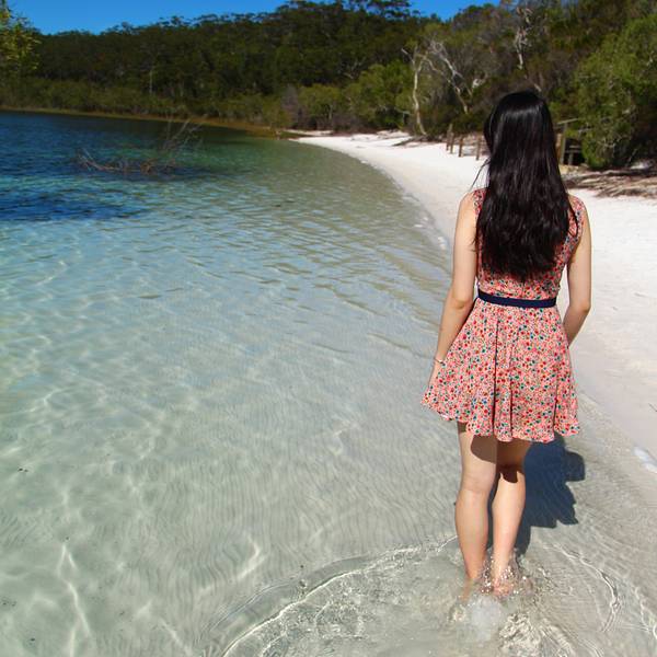 不过湖水真的美丽的让人心神荡漾。人渐渐多起来了,不喜欢这份喧闹,我们也准备去下一个景点了从停车场走出来就被她惊艳到了,湖水清澈到让人无法相信。戏水,Lake McKenzie 的水全部都是雨水汇集而成的。号称是最纯净的湖泊。不过湖水真的美丽的让人心神荡漾。岸边同样是沙子,但是和大海不同这里没有潮汐...从停车场走出来就被她惊艳到了,湖水清澈到让人无法相信。戏水,Lake McKenzie 的水全部都是雨水汇集而成的。号称是最纯净的湖泊。不过湖水真的美丽的让人心神荡漾。岸边同样是沙子,但是和大海不同这里没有潮汐,没有海浪,只有微风吹拂着湖面,细小的波浪把微风的形态烙印到了湖面之下。湖底的沙子都呈波纹状排列,护林员说可以去走一走很有按摩功效,可以活血化淤.... 好吧我承认后面这句是我编的。不过原理应该和鹅卵石路差不多吧。水里生长着两颗树,很奇怪呢,不知道为什么根部没有被泡烂,也不像是有气根的样子,不过倒是很适合取景。这张很有女神背影的感觉呢。湖边的沙子非常细软堆在一起像是玉石一般。人说水至清则无鱼,水中的确没有生活着大型鱼类,不过有这样的小鱼,只有指节一样的长度。被人吐槽把风景照丑了,我觉得还行啊,我从来不p图不加后期的人有这水平足够了。何必如此无情=_=绵软的白沙顺着指缝流逝。人渐渐多起来了,不喜欢这份喧闹,我们也准备去下一个景点了。 展开