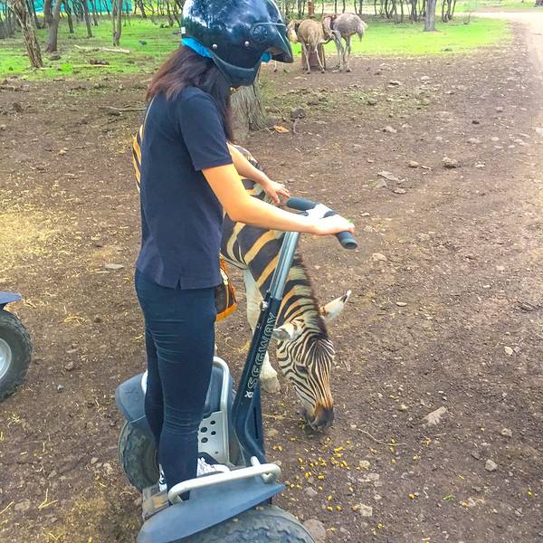这个项目也有1小时的,但我觉得2小时的可以更加深入到 Casela 草原的深处,途中可以与斑马、鸵鸟、孔雀零距离接触,运气好的话,还可以与羚羊一同肆意驰骋。