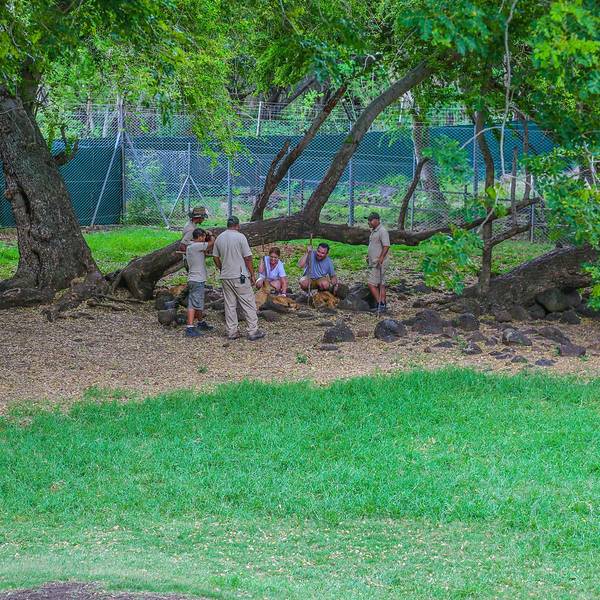 Casela 鸟公园是毛里求斯知名的非洲风情动物园。可以体验乘坐大篷车看动物(Safari)、与狮同行 (Walk with Lion)、四驱车 (Quad)、高空溜索(Ziplines)、攀岩(Canyoning)、登山(Via Ferrata)等项目。对于带小朋友前来的旅行者,还可以在小动物农场(Petting farm)饲喂动物宝宝。在这里最不能错过的就是与狮同行这个项目,在专业驯兽员的陪同下,你可以与百兽之王一同漫步,而且还是世界上非常少有的非洲白狮,甚至还可以与他们一同在草地嬉戏玩耍,很刺激吧?另外,在这个动物园中,还可以看到鸵鸟、斑马、象龟等非洲特有的野生动物。