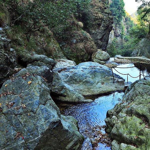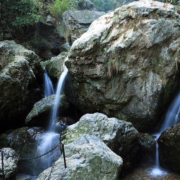 关山峡谷已开发的一部分长约1公里,谷底宽的地方有10多米,窄的地方3~5米,峡谷深约100米,溪流西东走向,落差近200米。峡谷两岸多是断壁悬崖,刀削斧劈一般,岩壁上长有许多灌木、藤蔓、苔藓等各类植物,一年四季,色彩斑斓,鸟语花香;崖顶上差天古木枝繁叶茂,郁郁葱葱,将峡谷遮的严严实实,抬头仰望,天空只留下窄窄的一线。峡谷内巨石林立,错落有致,形态各异,千奇百怪,无一不是出自大自然的鬼斧神工;平坦地段潺潺流淌的溪水清澈见底,许多小鱼儿在这里欢快地游弋;陡峭之处瀑布飞溅,水流拍击着岩石常常发出非常清脆悦耳的乐声;清晨水雾缭绕峡谷,金色霞光透过茂密的树叶映入谷内,景色更是美轮美奂。与其他许多峡谷相比,这里更秀美、更雄奇。它既是一个非常美丽的天然氧吧,又是炎炎夏日人们避暑的好去处,也是攀岩、溯溪的好所在,吸引着越来越多游客前来休闲避暑、旅游观光,也招来众多户外驴子们前往体验。
