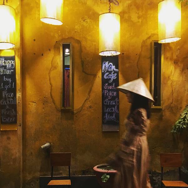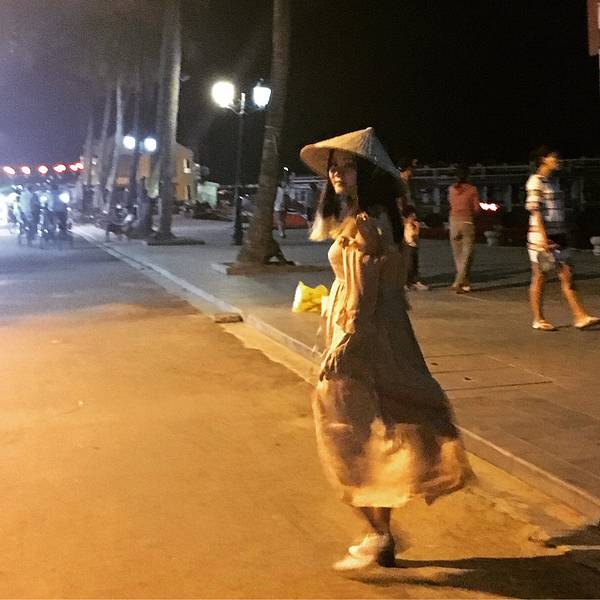 乘船、步行都可游览会安古城,晚上没有人收取门票,白天收取的门票也是古城里各种会馆的参观票,本身的古城是不收取门票的,所以不想参观会馆可以假装听不懂他们的话不买门票。越南时间比我们晚一个小时,我们6点他们就是5点,所以纬度差不多的情况下,越南5点天就黑了,早上6点不到天就亮了,而且这边很多做生意的6点半就开门营业了住的民宿距离古城步行10分钟的路程,可是走走停停的我们走到古城时,天已经完全暗了下来,灯笼也就都亮了起来。戴上越南斗笠,伪装成当地人走在越南老城。