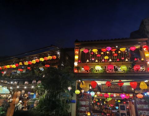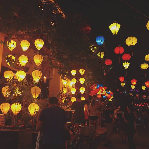 会安古城的夜晚非常的美丽,特别是这边的灯笼街。夜晚灯笼亮起来特别的繁华会安古城的灯笼街只有晚上才有哦!具体位置我也不懂怎么说,在一条河的旁边,河的一边就是古镇,另一边有晚上有很多酒吧按摩的地方,到了晚上就是夜市,灯笼一条街就在夜市里面。会安古镇很小的,晚上走走就应该...会安古城的灯笼街只有晚上才有哦!具体位置我也不懂怎么说,在一条河的旁边,河的一边就是古镇,另一边有晚上有很多酒吧按摩的地方,到了晚上就是夜市,灯笼一条街就在夜市里面。会安古镇很小的,晚上走走就应该可以看到了。哪里人最多,哪里最亮就对了。 会安古城的夜晚非常的美丽,特别是这边的灯笼街。夜晚灯笼亮起来特别的繁华。晚上古城的酒吧很热闹,有许多欧美国家的人在这里唱歌跳舞喝酒,相比起来亚洲人似乎就是看看夜景,逛逛夜市。 展开