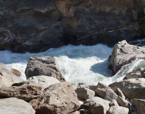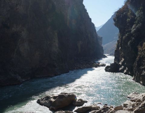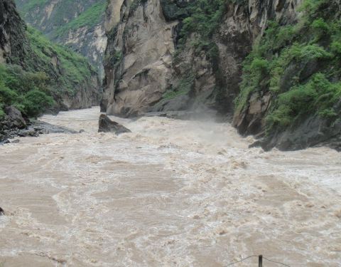 位于长江正源金沙江上,是丽江与迪庆州的界河,这里山高谷深,河道狭窄,河床落差加大,上游来水在此迸涌,水流湍急,水声震天,是虎跳峡的核心景区。