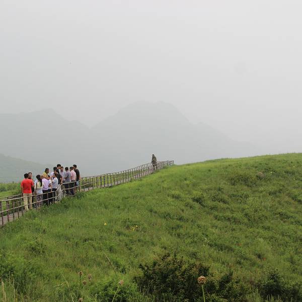 云中草原位于黄龙山顶,海拔1800米,面积约100公顷。一望无际的草原碧草如毯,白云缭绕在周围,群峰尽收眼底,站在草原,可观连绵峰顶,云海滚滚,仿佛置身于超凡仙境。