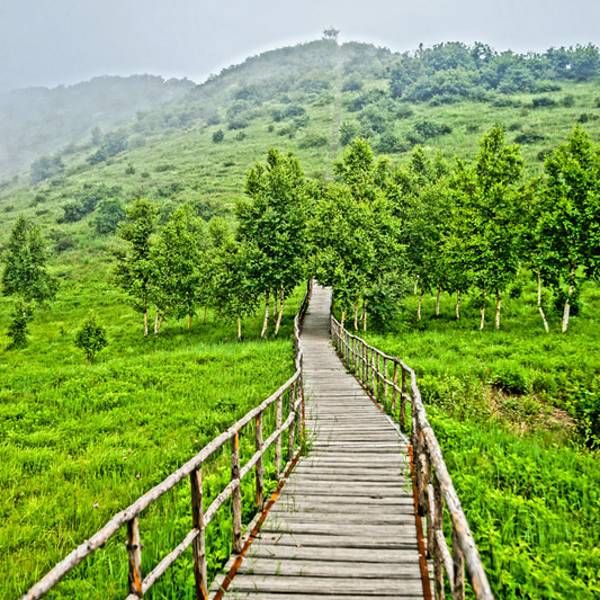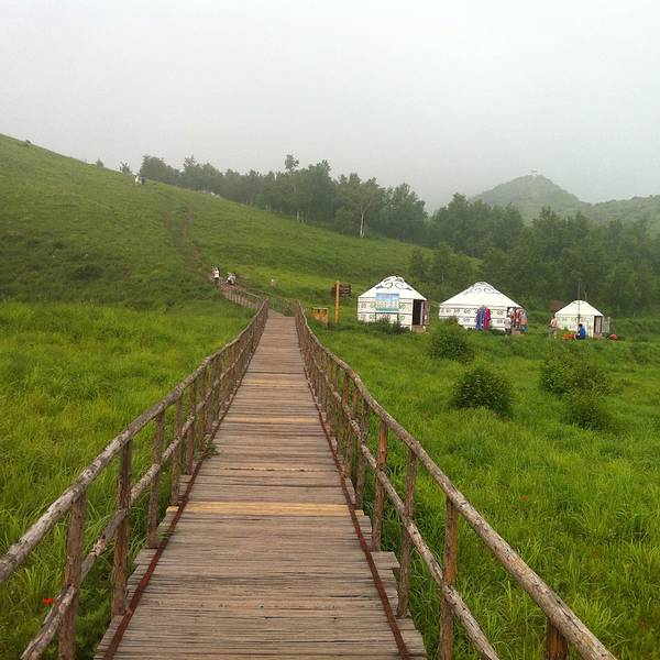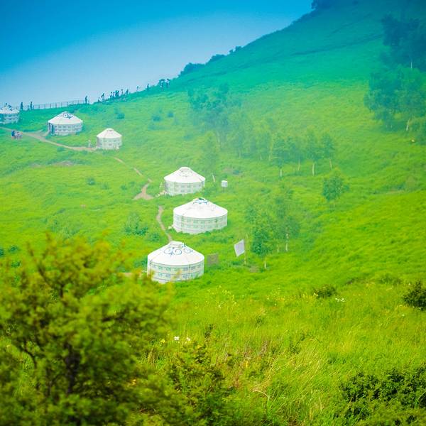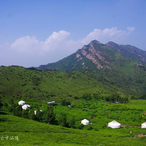 云中草原景色优美,山上覆盖着大面积的北方原始林区,林中草木繁茂,山花烂漫,山泉潺潺,山泉酿成一池一池的绿。岩滩上的泉水,透亮的纯,微微染点青翠;蔓向湖心深处的水,天然的青绿;向更深处蔓去的水,亮得透蓝。而在与山林交接处的水,犹如南国各色的树叶,现出深深浅浅各种各样的绿来,或曰草绿或曰嫩绿或曰青绿或曰墨绿……这里的原始和自然成为观赏不尽的天然画卷。 云中草原因云雾缭绕而得名, 山中云雾多变,一块雨幕飘过头顶,竟沥沥地下起雨来。山顶上,碧绿如毯的平川使视野一下开阔了许多,如此美丽的草原竟然在这山巅之上,白云之中。环绕四周,群山如黛,云雾缭绕,竟在周身与脚下,真有一番飘飘欲仙的感觉。 这里四五月份为花季,鲜花怒放,竞相争艳,各种桃花、杏花、野菊花遍布整个草原及黄龙山庄的每一个角落。 六月中旬, 一望无际的原野,绿草茵茵,野花点点,所不同的是,白云不仅举手可触,而且也缭绕在我的身边和脚下,这是一片云中的草原,一片在高山之巅,远离人际,静静地仰视苍穹俯瞰人寰的草原,她的原始和独特深深地吸引着城市的喧嚣。七八月间,山中最高气温不过24摄氏度,是避暑保健的天然氧吧;这里5至10月份为丰草期,青草随风摇曳,婀娜多姿。 这里秀美原始以及与山外的差异,让人有一种步入桃花源的感觉。一路向深山走去,一路有看不完的美景。溪水淙淙,彩蝶纷飞起舞,空气中充满清凉与草木的气息,几乎让我忘却了山外依旧是闷热的酷暑。 七八月间,山中最高气温不过24摄氏度,年平均气温是19.1摄氏度,是避暑保健的天然氧吧,也是度假休闲的绝佳去处。