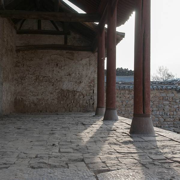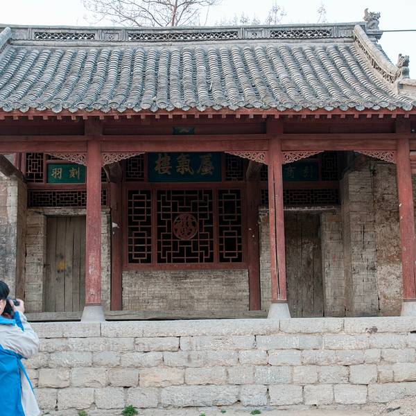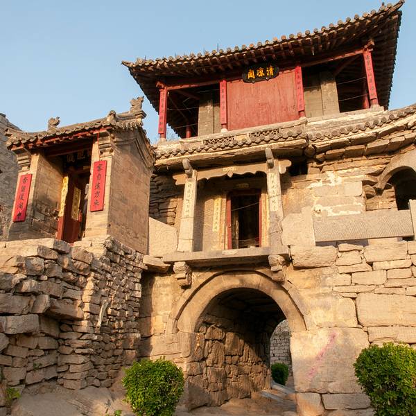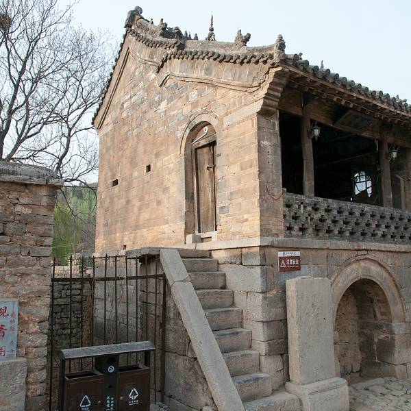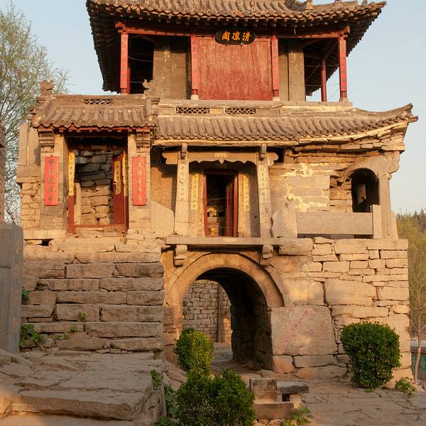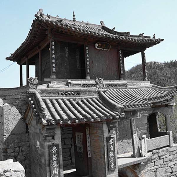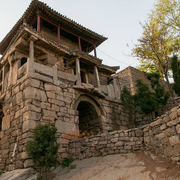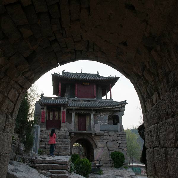 于家村是个小山村,经过不太好走的盘山路后,终于在黄昏前赶到。这里还保留着淳朴的民风,商业气氛很淡。导游说,凡是门口贴着标志的都是农家院,但是,从始至终,都没有人上来搭讪是否住宿。游览完后,天快要黑了。导游给联系了村上最大的一家宾馆。到了之后,可以洗澡的标准间没有了,只剩下普通间了,这普通间普通的不能再普通了,甚至连公用的水房里都没有凉水!被罩床罩都是没有洗过的,好在我们自己车上带着三床被子,铺上自己的毛巾被,盖上自己的被子,很快就睡着了。这里的夜太安静了,一弯新月,几个星星,挂在夜空,分外明亮。宾馆里做的豆腐味道特别地道,挂糊炸花椒叶也很有味道。 于家村最典型的建筑是清凉阁。清凉阁始建于明万历年间,是由村中一个叫于春喜的人独自修建起来的,相传其人力大无比。清凉阁依山建造,并无根基,完全由石块堆砌而成,最大的石块有万余斤重,当年此人凭一己之力将阁建造到二层,原打算建九层高,但于春喜由于手指受伤,得破伤风而去世了,后村民用砖木结构续建了第三层。