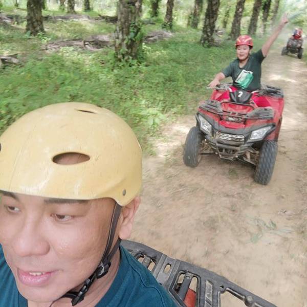 其中有个小插曲,我买了两张成人票网上说是12岁以上才能独自骑ATV, 但是管理员不让我13岁的儿子独自骑行一部 ATV. 还说要 16岁才能独自骑行。 我紧决不接受而且告之如果让我们两共享骑一部ATV的话我们两都会拒绝骑行而且拒绝接下来的活动,会回旅行社要求退款他们才最终接受。