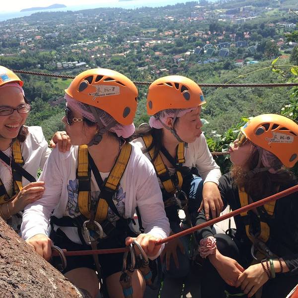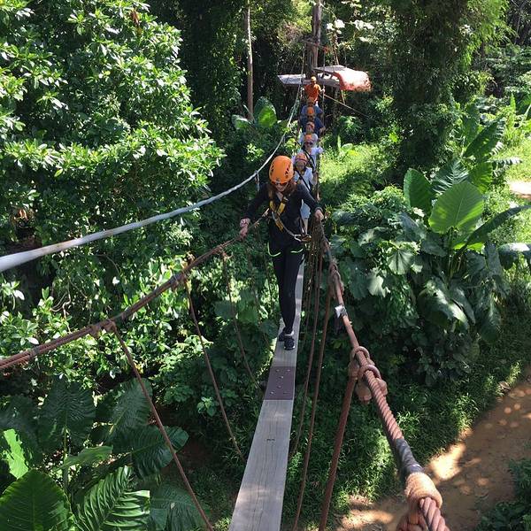 最高40米速降。最长跨度400米横度,我只想说太刺激了,就和人缘泰山一样。出发前的合照。这个就是起点丛林飞跃也是来普吉必玩的项目,这次丛林飞跃我选择了楠楠的普吉站预定的是最新最刺激的Hanoman world建设在80000平方你的热带雨林中,全进口法国登山设备,分别有16站和28站最长飞索跨度达400米,最高速降40米,...丛林飞跃也是来普吉必玩的项目,这次丛林飞跃我选择了楠楠的普吉站预定的是最新最刺激的Hanoman world建设在80000平方你的热带雨林中,全进口法国登山设备,分别有16站和28站最长飞索跨度达400米,最高速降40米,我果断选择了28站。像我这样有恐高的人都能玩下来,来普吉的小伙伴可以试试哦。
