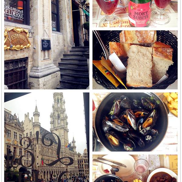 到那边已是中午1点多,于是先找了家攻略上推荐的餐厅 -- 因为这家离大广场特别近,所以选了它。事实证明,其实当时标记的餐馆都在附近500米以内,很近。 吃了推荐的 法兰德斯炖牛肉(Carbonnades à la flamande/Flemish beef stew)和青口,其实非常一般。本身就不应该难吃的菜,只能说他们没有做砸,牛肉并不好吃,太偏甜。青口倒是一大盆吃到撑,还有个别坏的。 餐馆环境不错,从窗口往外就是著名的大广场了。