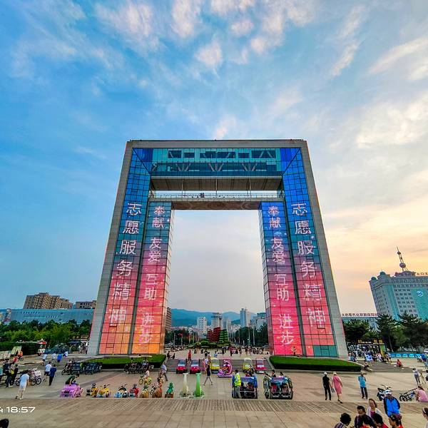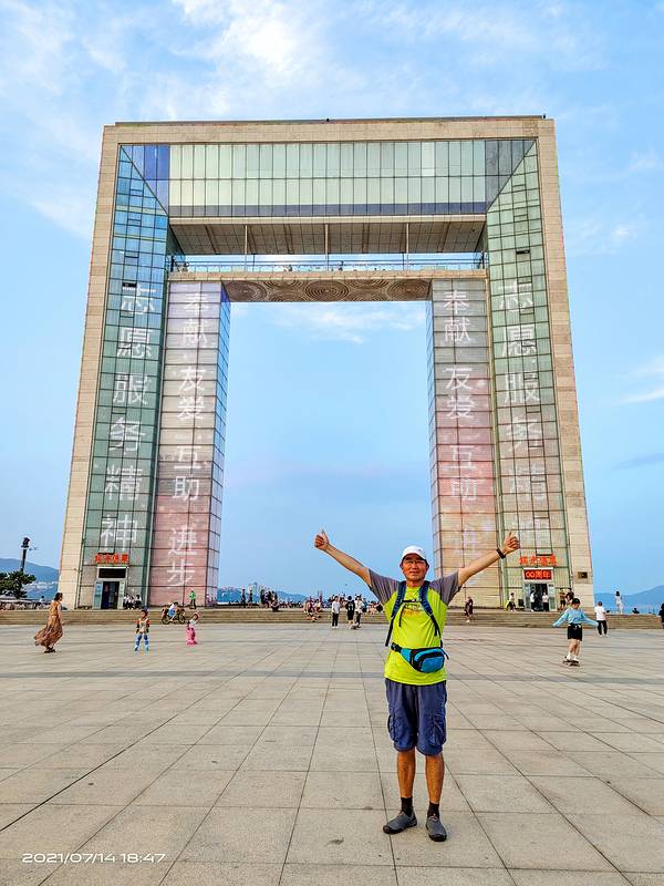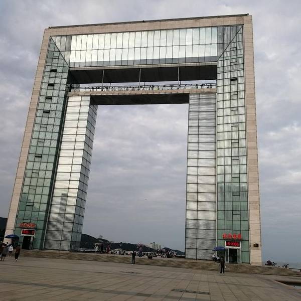 幸福门就在海边,从这里看海,天蓝水清,站在幸福门清晰看到刘公岛上的景色,也能看到市区的全貌幸福门是威海的地标性建筑,代表着威海现代化的城市形象。幸福门就在海边,从这里看海,天蓝水清,站在幸福门清晰看到刘公岛上的景色,也能看到市区的全貌。