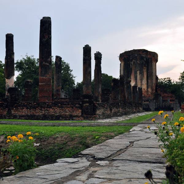 Chetuphon寺建于公元1477年,庙名意为七塔寺,寺内主建筑方塔之上有七座小塔,所以得名。寺庙建筑主体风格,大塔四周布满女神及天使的灰泥浮雕像,这种雕饰风格后来影响到缅甸,被称为“清迈风格”。 如今古寺已经变为遗址,有一座尊呈走姿的佛像,头像已经遗失,但佛像线条依然可见。