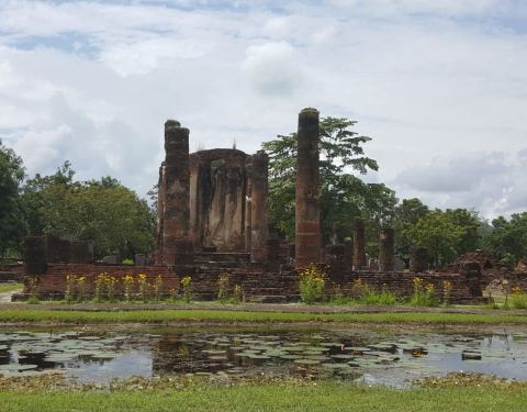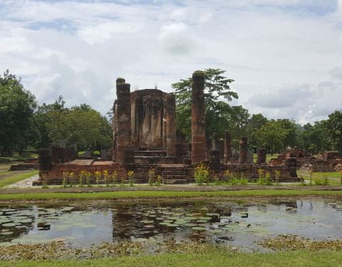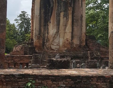 当地的翻译叫切都鹏寺。位于素可泰城南,在夕红寺的对面。相对来说算是这一带比较大的寺庙了。比较壮观的就是四面墙壁上的佛像,分别是佛的四种姿态,不过大多损毁严重。